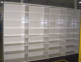 Mobile Shelving / Compactus Units can increase your storage space by as much as 50% and can be custom made to fit your floor space. These expanding systems have movable racks of shelving with a choice of shelving options. You can choose from self-based units, which are quick to install, easy to move, easy to relocate or reconfigure, or fixed track units, which are embedded into the floor.